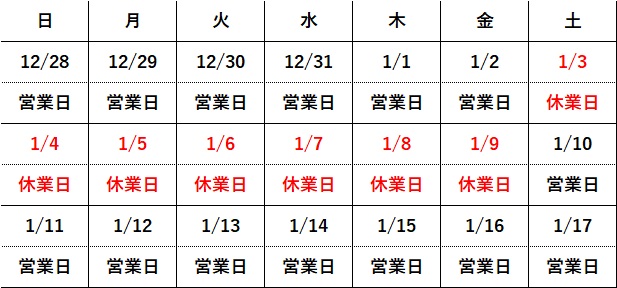 【年始休業日のお知らせ】2026/1/3(土)~1/9(金)